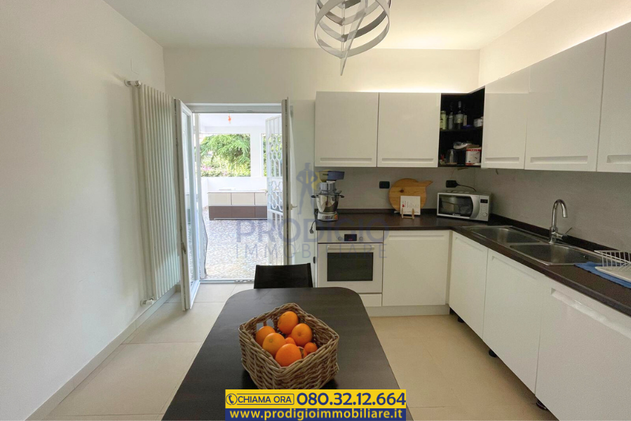 La cucina abitabile, spaziosa e ben organizzata, ti sorprenderà con un dettaglio speciale: si affaccia su una grande veranda, un vero gioiello che trasforma ogni pasto in un momento da ricordare.