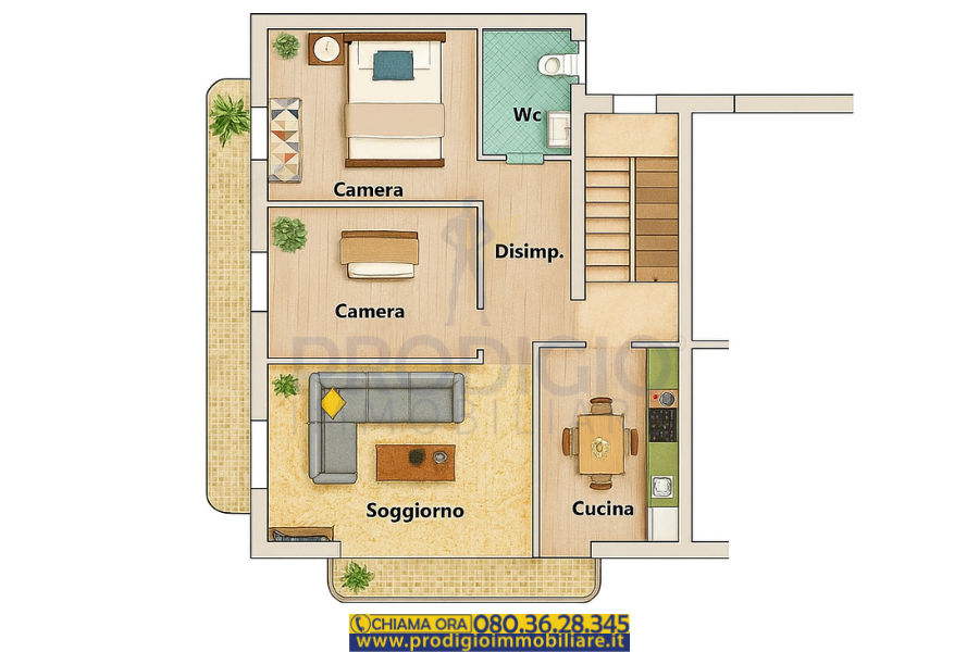 L’immobile si compone di una cucina abitabile, soggiorno, due camere da letto e un bagno. E’ presente una comoda soffitta, perfetta come spazio accessorio o per riporre ciò che serve in più. Completano la proprietà un garage a piano terra di 25 mq, un valore aggiunto per chi cerca anche una soluzione con posto auto o spazio deposito.