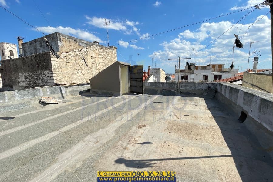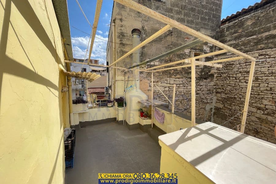La casa è composta al piano rialzato da un comodo ripostiglio, mentre ai piani superiori si sviluppano un cucinino, un soggiorno, una camera da letto matrimoniale, una cameretta, un bagno e un terrazzino con affaccio sui tetti del centro storico.